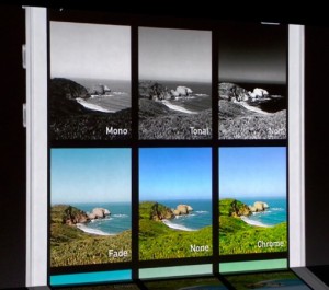 L'application Appareil photo a été redessiné et comprend maintenant des filtres, ainsi qu' une interface améliorée avec simple glisser entre les fonctions